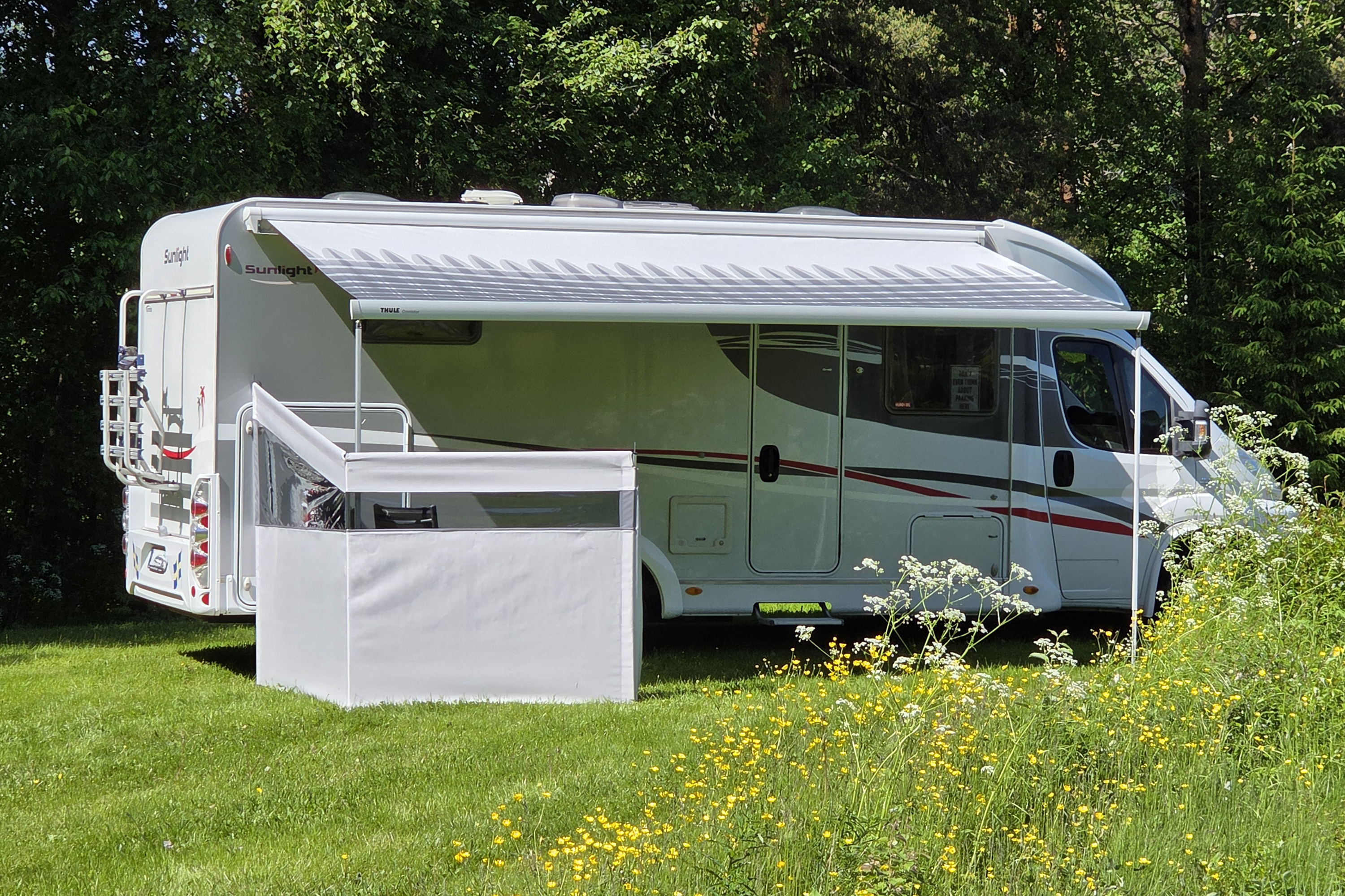 Mått-anpassande Sidor och front till husbilsmarkis.